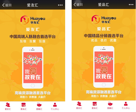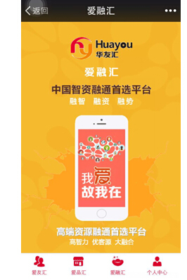 據了解,“華友匯”科技平臺的口號就是“讓天下沒有難做的營銷”,他們有著一支專業的技術支持和互聯網營銷團隊,幫助企業推廣產品或提供銷售渠道,并且開放和浙商創投的合作,為企業家提供投資成功率最高的風投建議。最重要的是,經過15年培訓品牌的積累,“華友匯”平臺上有著遍布全國近30萬的家企業學員。這個由“愛友匯”、“愛融會”、“愛品匯”三部分組成的高端資源整合平臺,將全國所有華友企業的信息經過重組,錄入系統,以PC端、APP、微信端口向全體華友提供服務。在這里,你可以準確地找到同行和跨界的華友,輕松地進行融資,也可以從容地出售產品,更能開開心心地掙傭金,還能隨心所欲地獻愛心(把收益的一部分捐給免費大學)……這一切只需要一個賬號就可以完成。