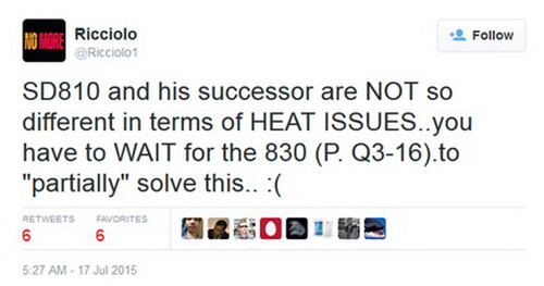 ? ? ? ?據外媒報到和驍龍810一樣驍龍820同樣也存在過熱的問題。該媒體引用爆料者的話說“在發熱問題上,驍龍820與他的前任810,并沒有什么不同,你只能等待驍龍830處理器來解決這一問題了。”