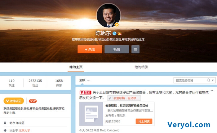 非常在線2015年8月27日消息?今日凌晨,聯想移動業務集團總裁陳旭東在微博中公開宣布,聯想移動業務集團將進行有關產品線方面的整合以及新的組織架構,稱未來摩托羅拉團隊將負責智能手機的設計、開發和制造,摩托羅拉移動前任負責人奧斯特羅將統一負責聯想集團的手機業務,并向移動總裁陳旭東匯報。