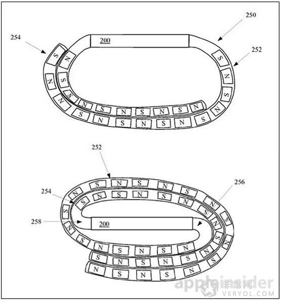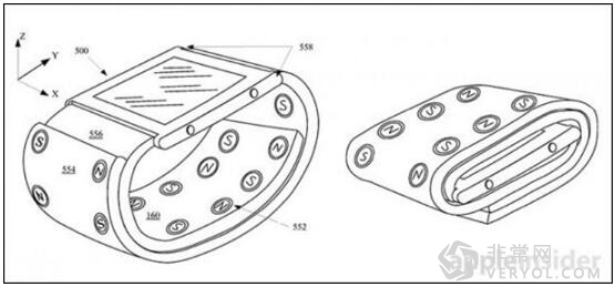 據(jù)最新消息顯示,蘋果最新申請了一個智能表帶專利,名叫“磁性腕帶”。從專利申請中可知,該智能表帶具有磁性閉合功能,這一功能在佩戴時沒什么作用,但當你需要卸下手表時,它就會變身為一個保護殼,對Apple?Watch進行環(huán)繞式保護。
