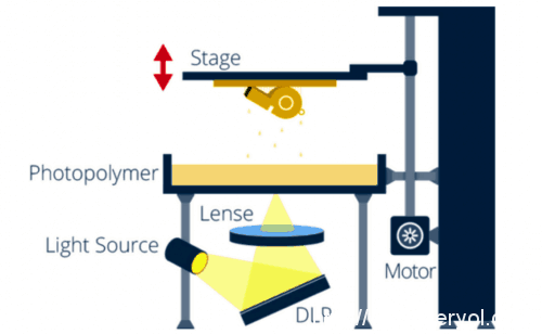 在制作這架打印機時,他們放棄了傳統的FDM工藝,采用了更為先進的運用數字光學原理,利用一架可以發射紫外光的投影儀作為打印工具。在進行打印時,只需要根據以層為單位設計出的模型,將紫外光投影在液態的材料中,使其一層層發生固化,便可打印出最終成品。